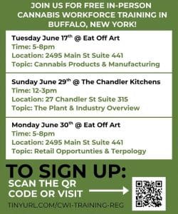 The Chandler Kitchens 27 Chandler St, Suite 315, BuffaloReady to turn your passion into a cannabis career? Join us in Buffalo, NY for FREE in-person Cannabis Workforce Trainings with the Cannabis Workforce Initiative! Whether you’re new to the industry or leveling up your knowledge — these sessions are packed with real-world insights and practical skills. 🗓 Upcoming June Sessions: ✅ Tuesday June 17…